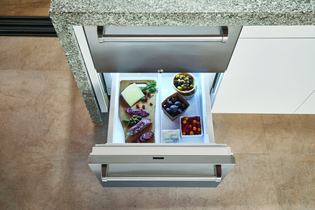 Im Freien kochen ist ein besonderes Outdoor-Erlebnis. Mit einem Outdoor-Kühlgerät müssen Sie beim Zubereiten der Speisen nicht immer wieder ins Haus und zurück. Die Kühlschubladen von Sub-Zero sorgen dafür, dass Fleisch, Fisch und Gemüse herrlich kühl und frisch bleiben. Natürlich ist auch das Design dieses Outdoor-Kühlgeräts eine Augenweide.