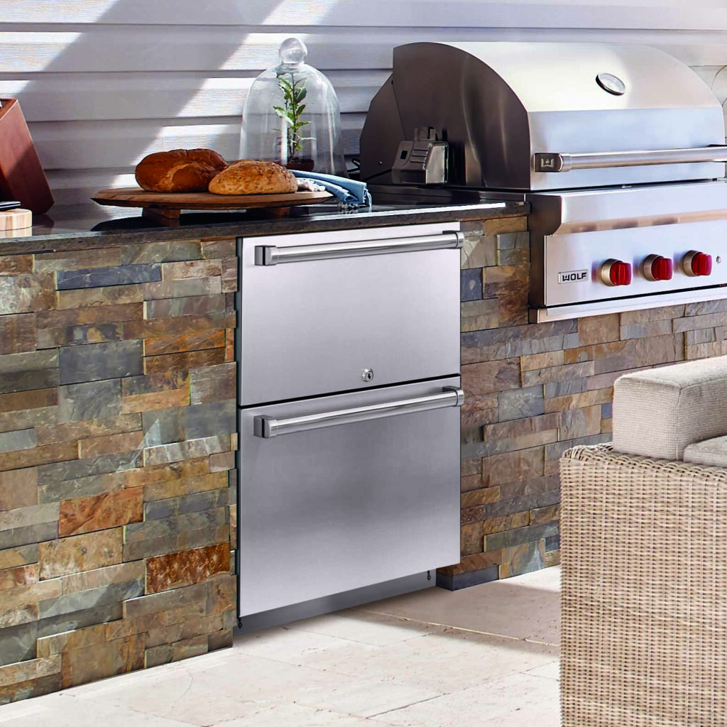 Zwei Kühlschubladen für den Innen- und/oder Außenbereich.