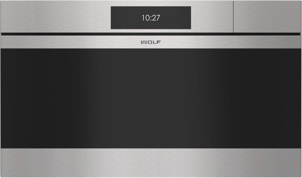 Umluft-Dampfgarer von Wolf im Contemporary-Design mit Edelstahl und versenkbarem Griff.
