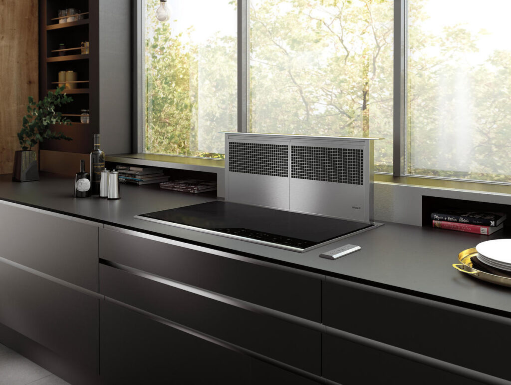 Wählen Sie die Absaugung, die zu Ihrer Küche und Ihren Kochgewohnheiten passt. Soll es eine Wand- oder Insellösung sein? Oder eine Downdraft-Absaugung? Sie haben außerdem Auswahl aus verschiedenen Stilrichtungen wie Edelstahl, Schwarzglas oder einem dezent verborgenen Dunstabzug.