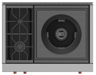 91 cm Rangetop mit 2 Brennern und Wok.